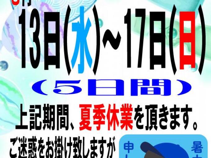 ◎ 夏季休業のお知らせ ◎
