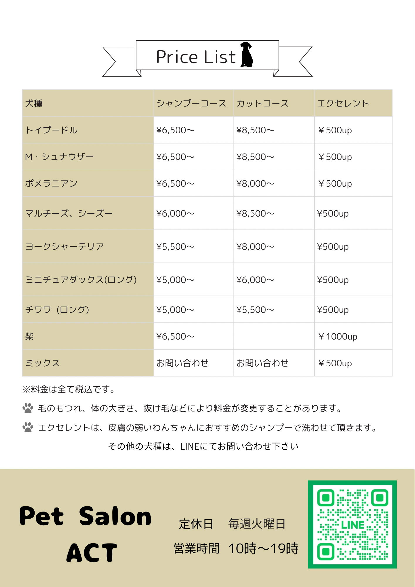 価格改定をさせて頂きます。