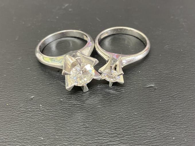 ダイヤモンドのお買取です。左側が1.8カラット。右側が0.5カラットです。単体で見ているとその大きさの違いには気づきにくいですが、こうやって比べてみると1.8カラットがどれだけ大きいかが分かります。ダイヤモンドのグレードはどちらも平均以上です。どのようなダイヤモンドもおまかせください。おかげさまで13周年!金・プラチナ・ダイヤモンドのお買取りもおたからや箕面店へ!