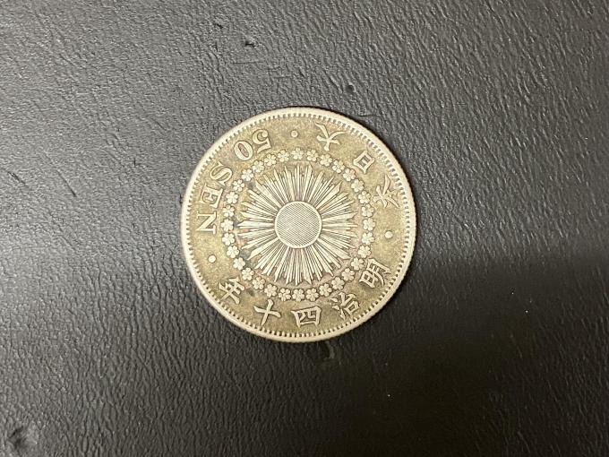 古銭のお買取です。こちらは旭日50銭銀貨。明治39年から大正6年まで発行された貨幣です。画像は明治40年発行のものですが、特に明治期は各年度発行枚数が多く、よくお買取させて頂く古銭のひとつです。古銭は知識が必要です。買取経験豊富なおたからや箕面店にぜひおまかせください。おかげさまで13周年!古銭のお買取りもおたからや箕面店へ!