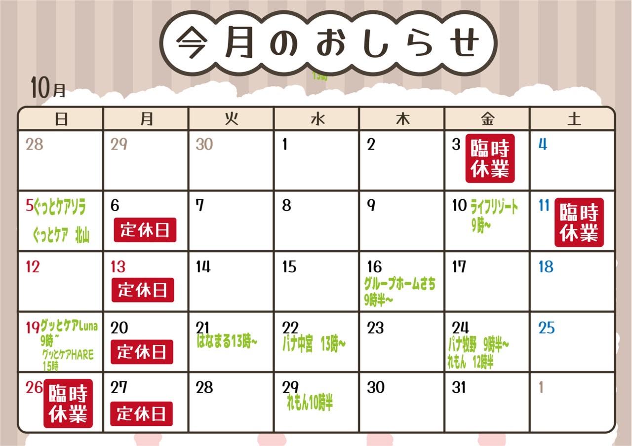 10月の予定とお願い
