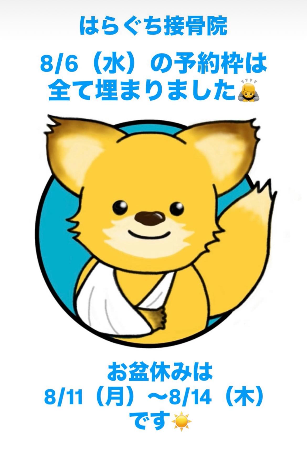 > 8/6(水)予約状況
