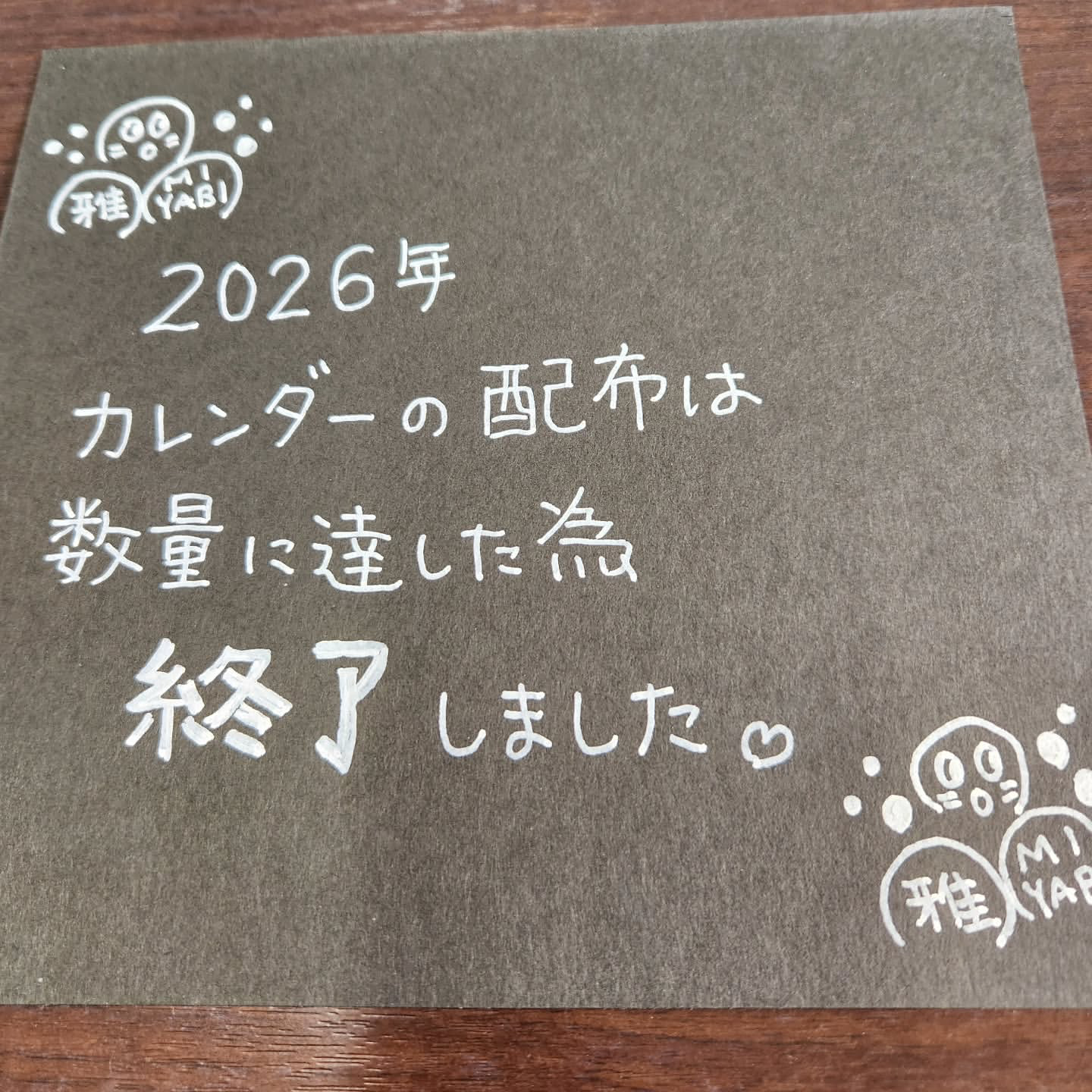 2026年のカレンダーは、数量に達した為終了いたしました