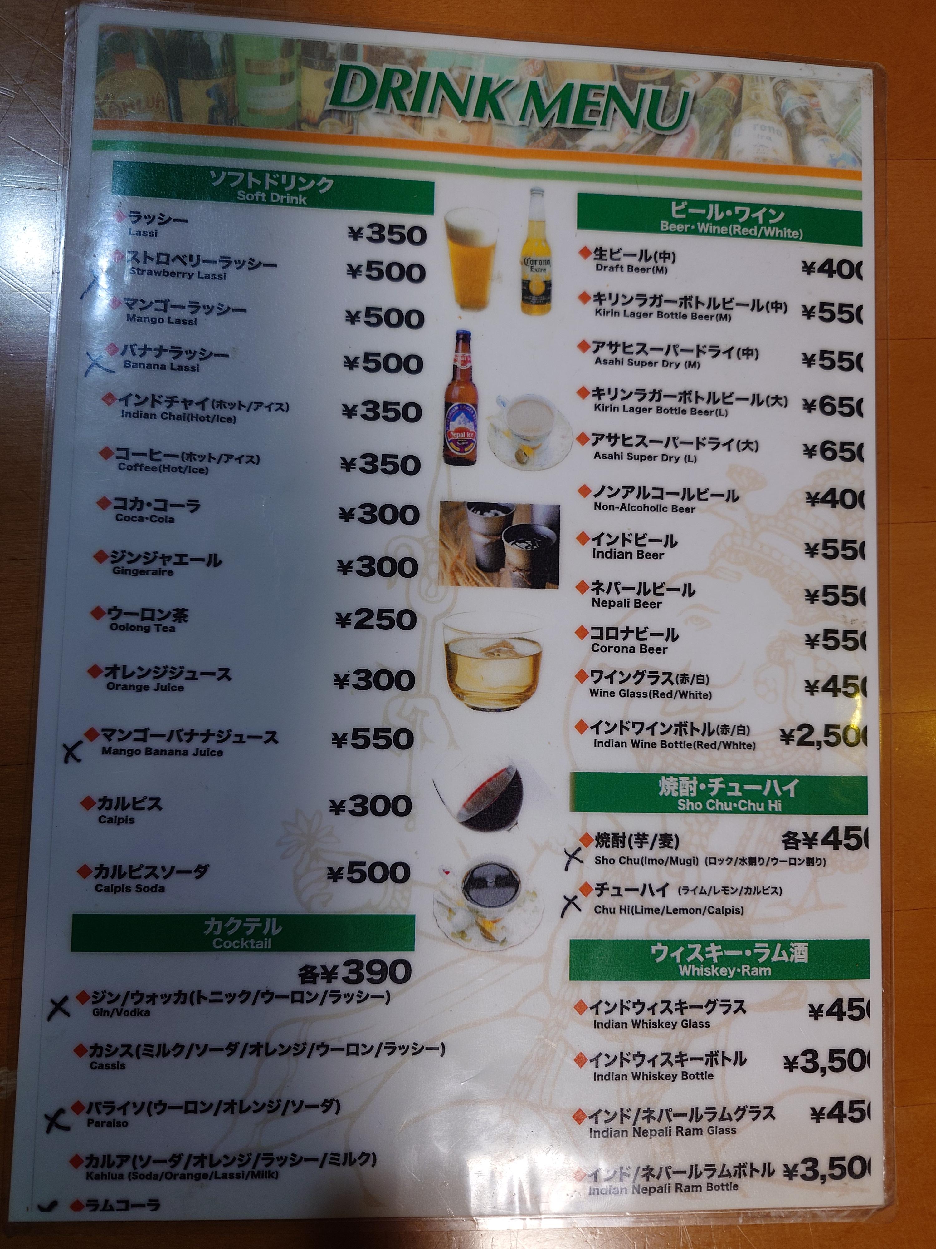 ドリンクメニュー